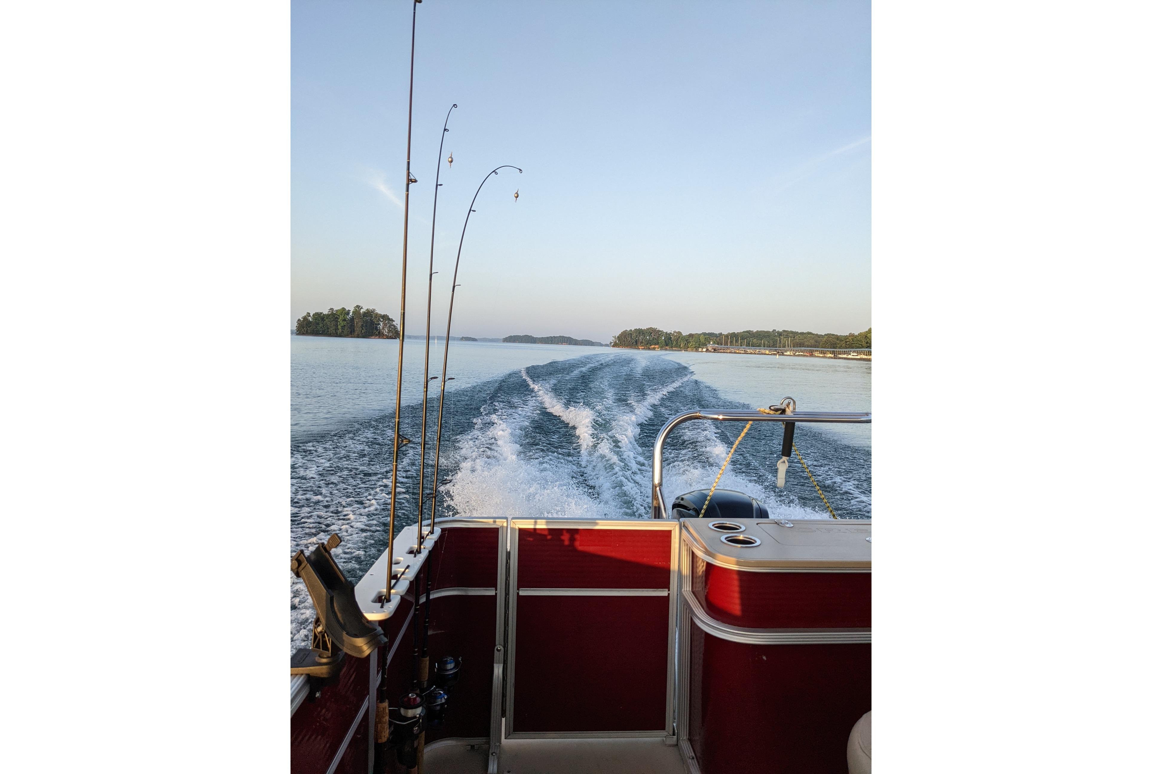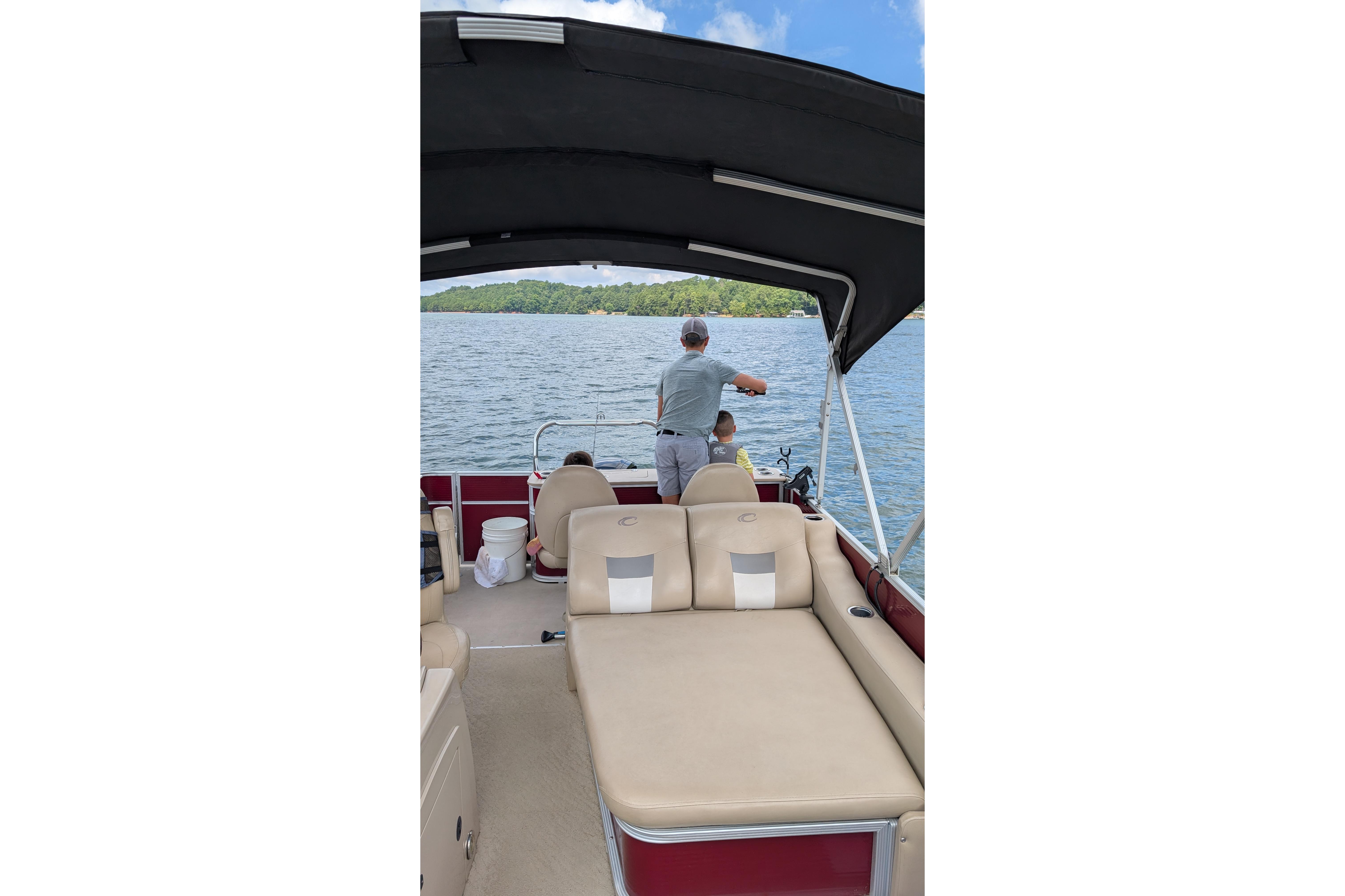 New Listing in great condition! Really nice pontoon with Fish and Cruise Package! Everything included that you need to go boating or fishing! Hummingbird Fish Finder/GPS, Some fishing equipment, Life jackets, Anchor, dock lines, bumpers, 2 fire extinquishers, 3 person tube, tow rope, Anchor, 12 Volt inflator, Ski Tow Bar, full boat cover, and much more. Motor only has  220 Hours! NO TRAILER, boat is in slip at Port Royale Marina. Slip is assumable. Call Charlie Bell 678 845 6473 for appointment to see.