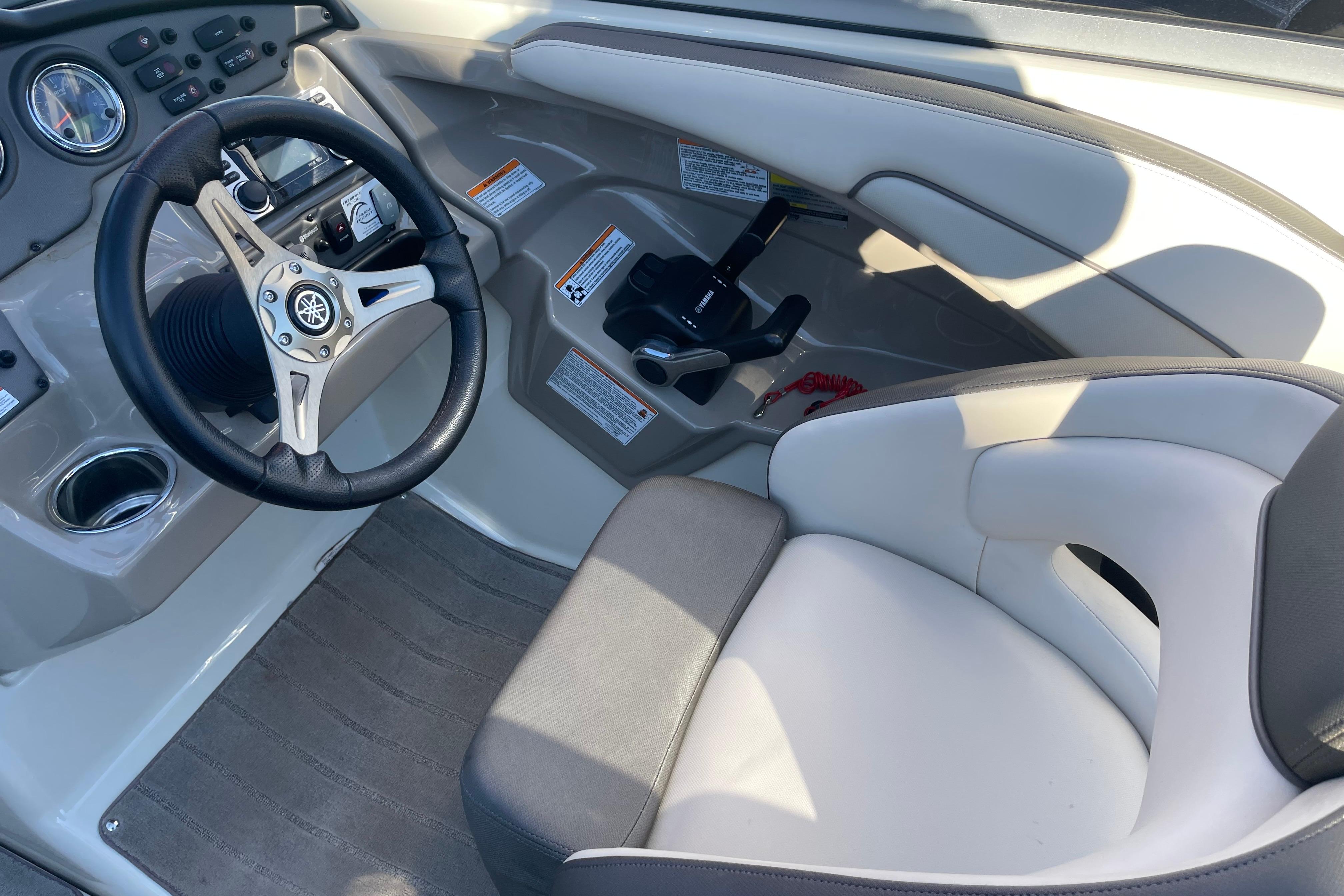 Just arrived – Wow what a beauty! Absolutely incredible condition, well loved and well maintained. She’s got a tower and bimini, thrust vectors, great sound system and so much more! The insert cushions weren’t even ever used, still wrapped in plastic! Twin 1.8L HO engines providing 360HP!! Trailer and cover included 😀 This is a lot of boat for the money especially considering it’s a Yamaha! Hop aboard at Park Marine Kennesaw and ask for Seth