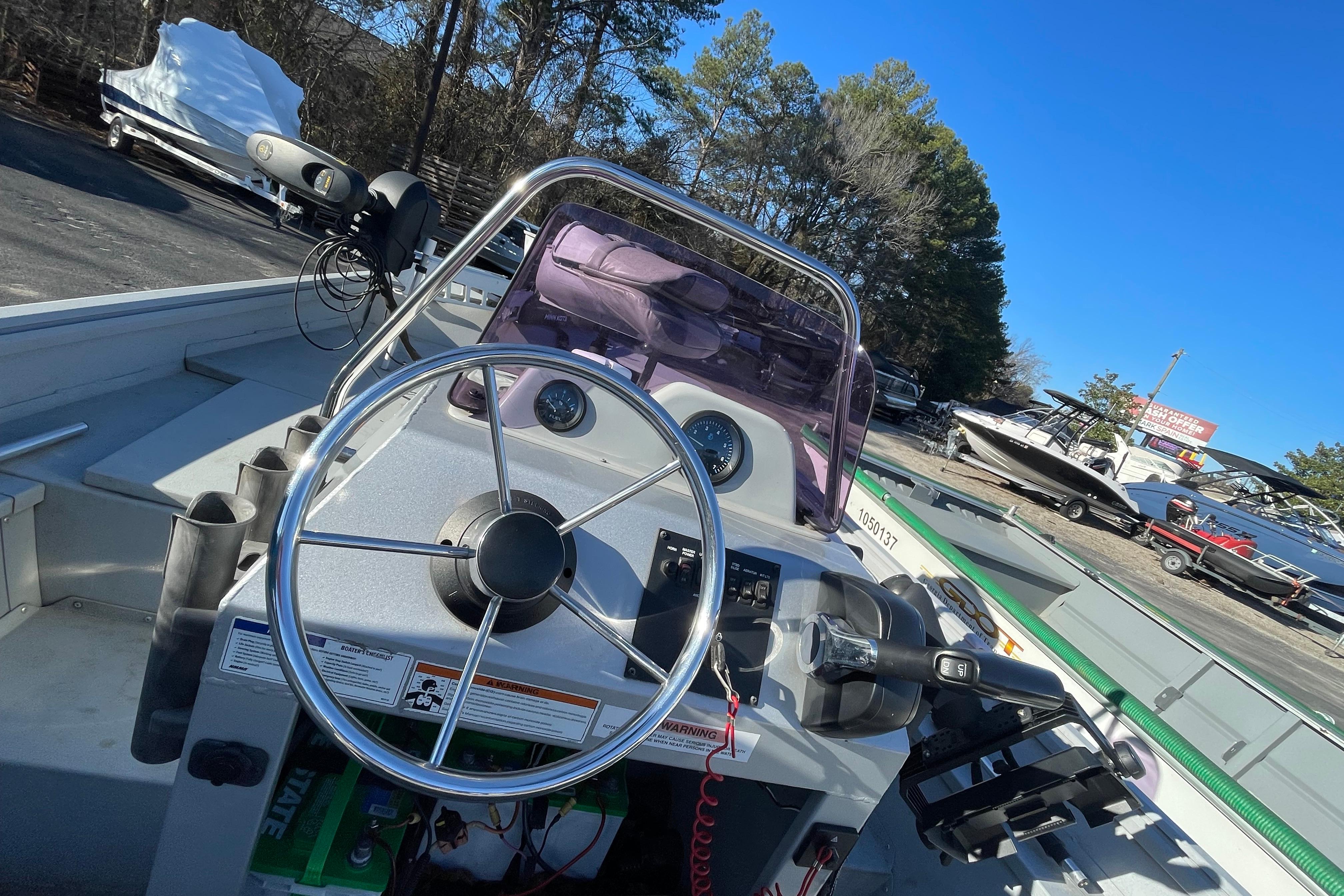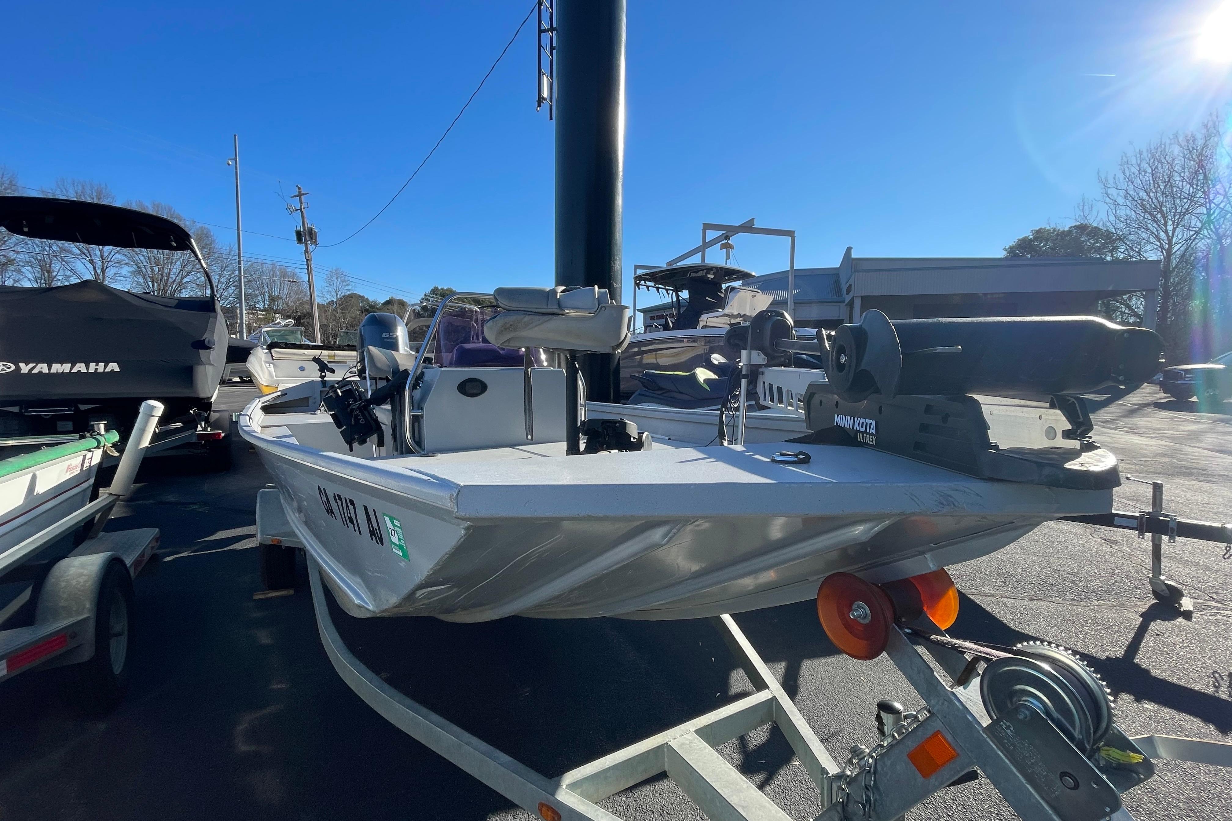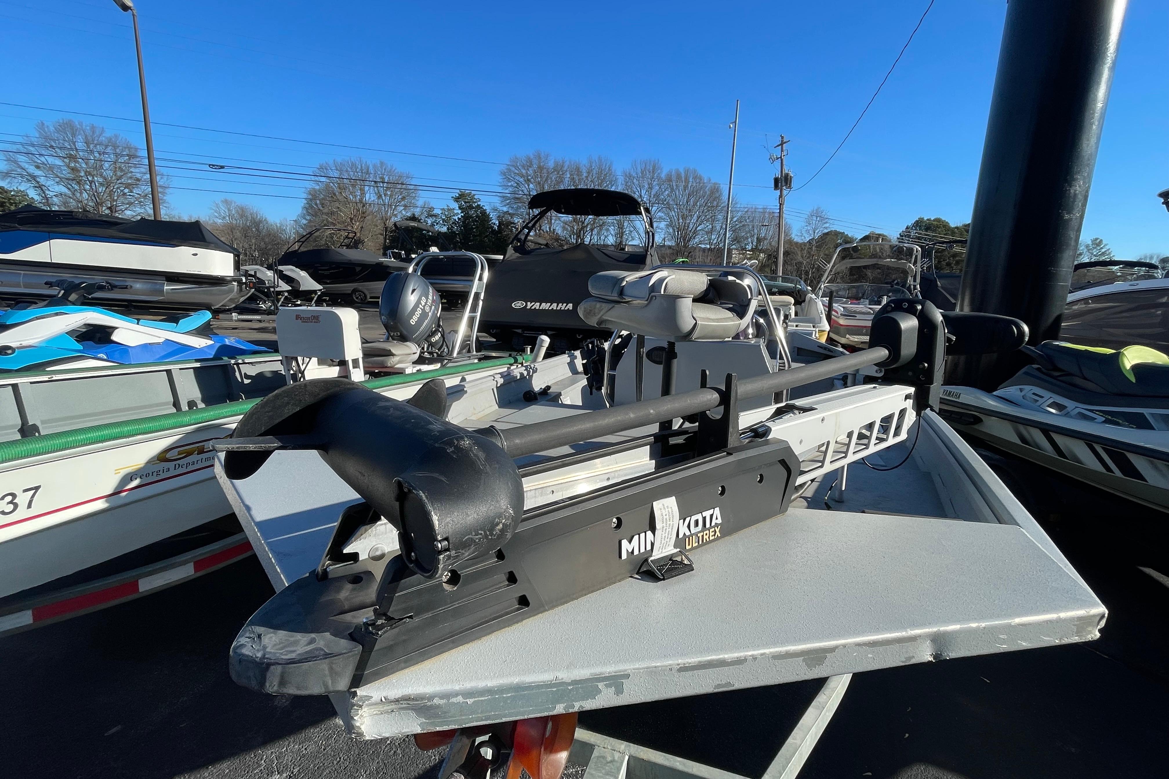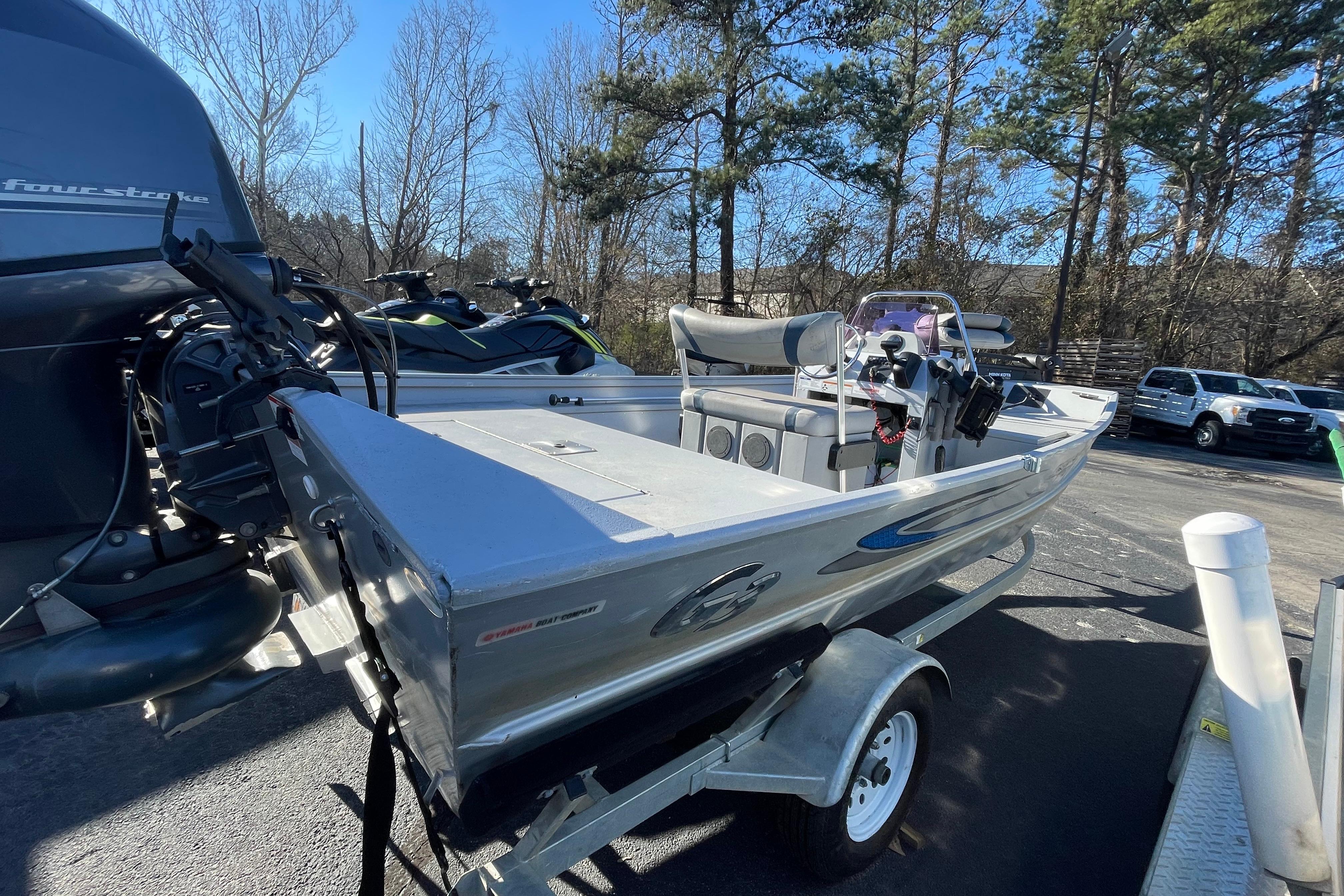 One owner, well loved and loaded. 65hp Yamaha outboard jet helps you get in the shallows. Minn-Kota trolling motor, rod mounts and more included so you’re ready to hit the water. Has a mount for a Garmin, but no unit included. Highly sought after center console layout and with room with 5 it’s comfortable and functional. Hop aboard at Park Marine Kennesaw. Ask for Seth.