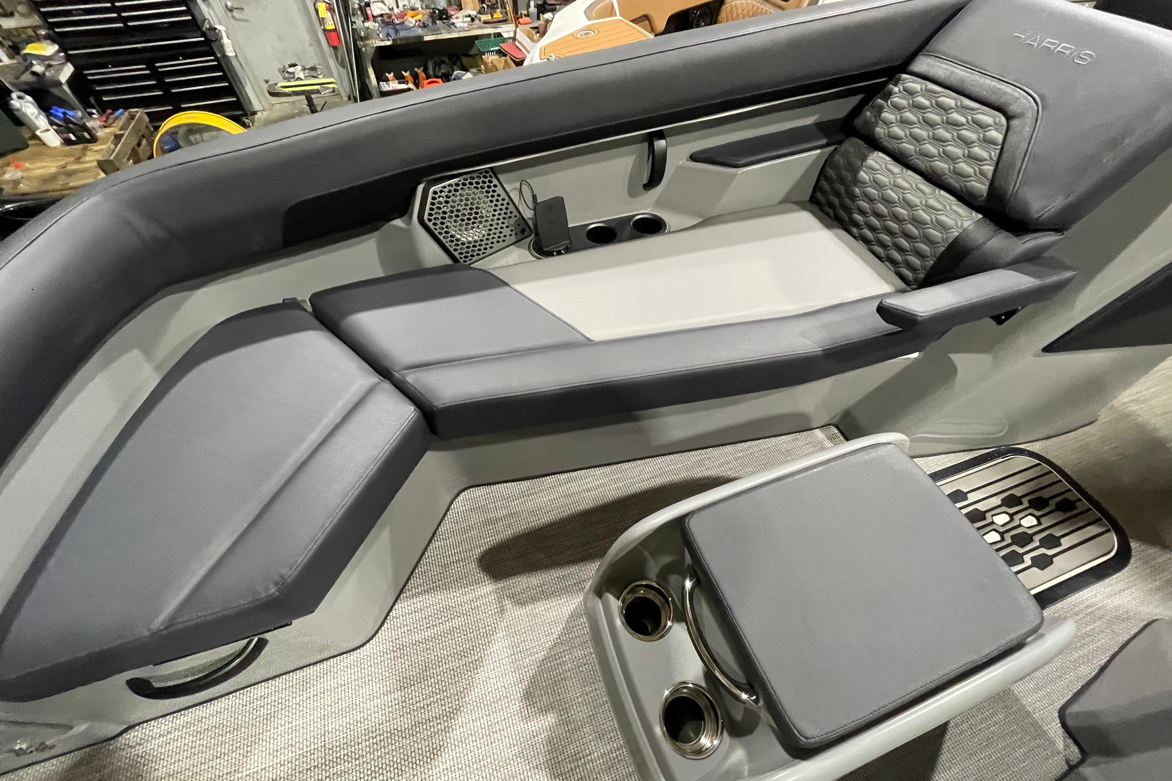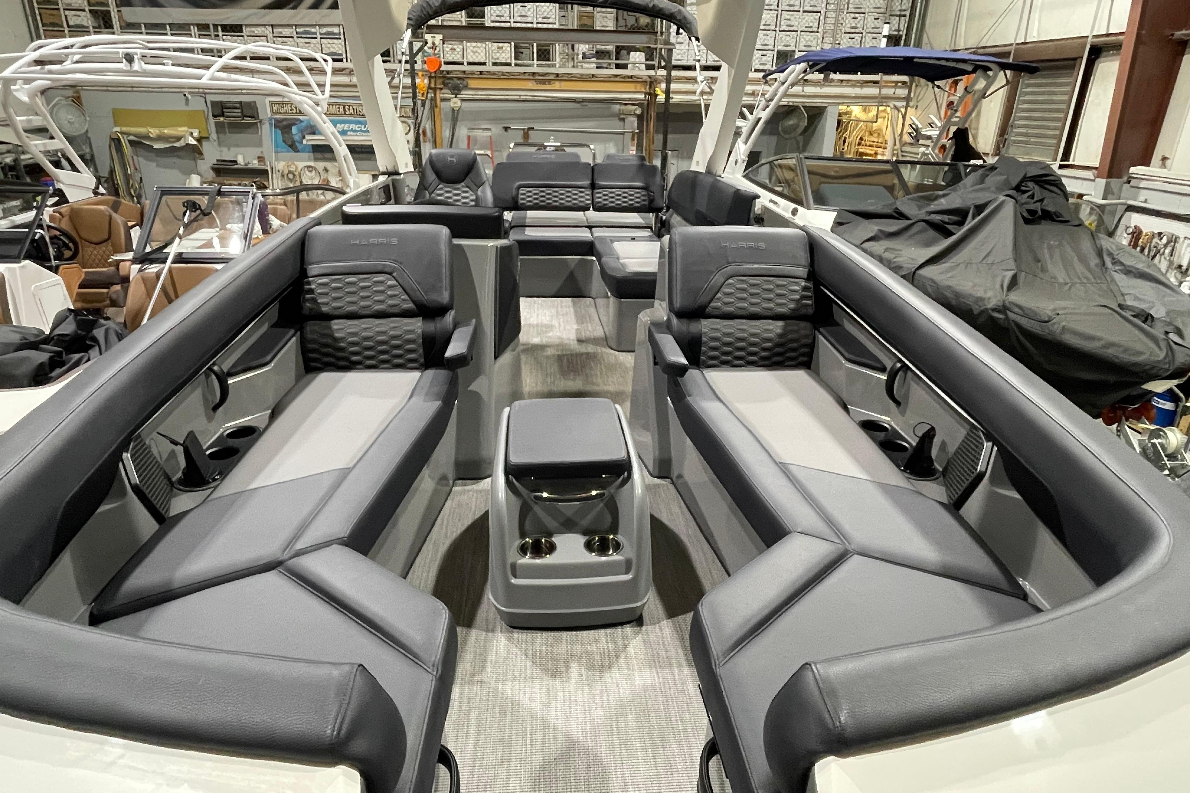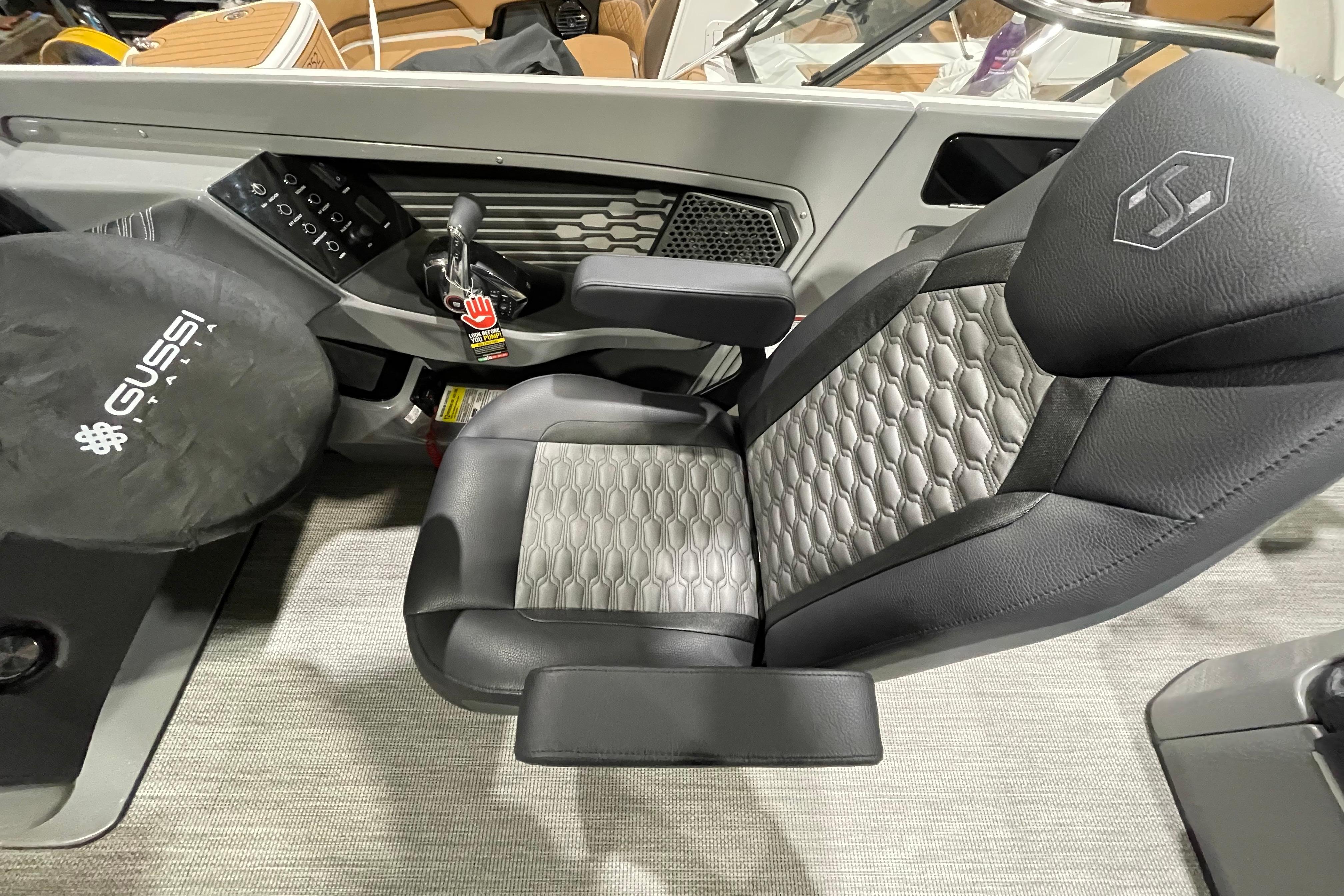 Command the water from the luxury high‑back helm seat, complemented by dual NSX12 displays for next-level navigation and control. The JL Platinum Elite stereo system surrounds the boat with crystal‑clear sound, while the Total Light Package with C‑Zone sets the mood with premium interior and exterior lighting.