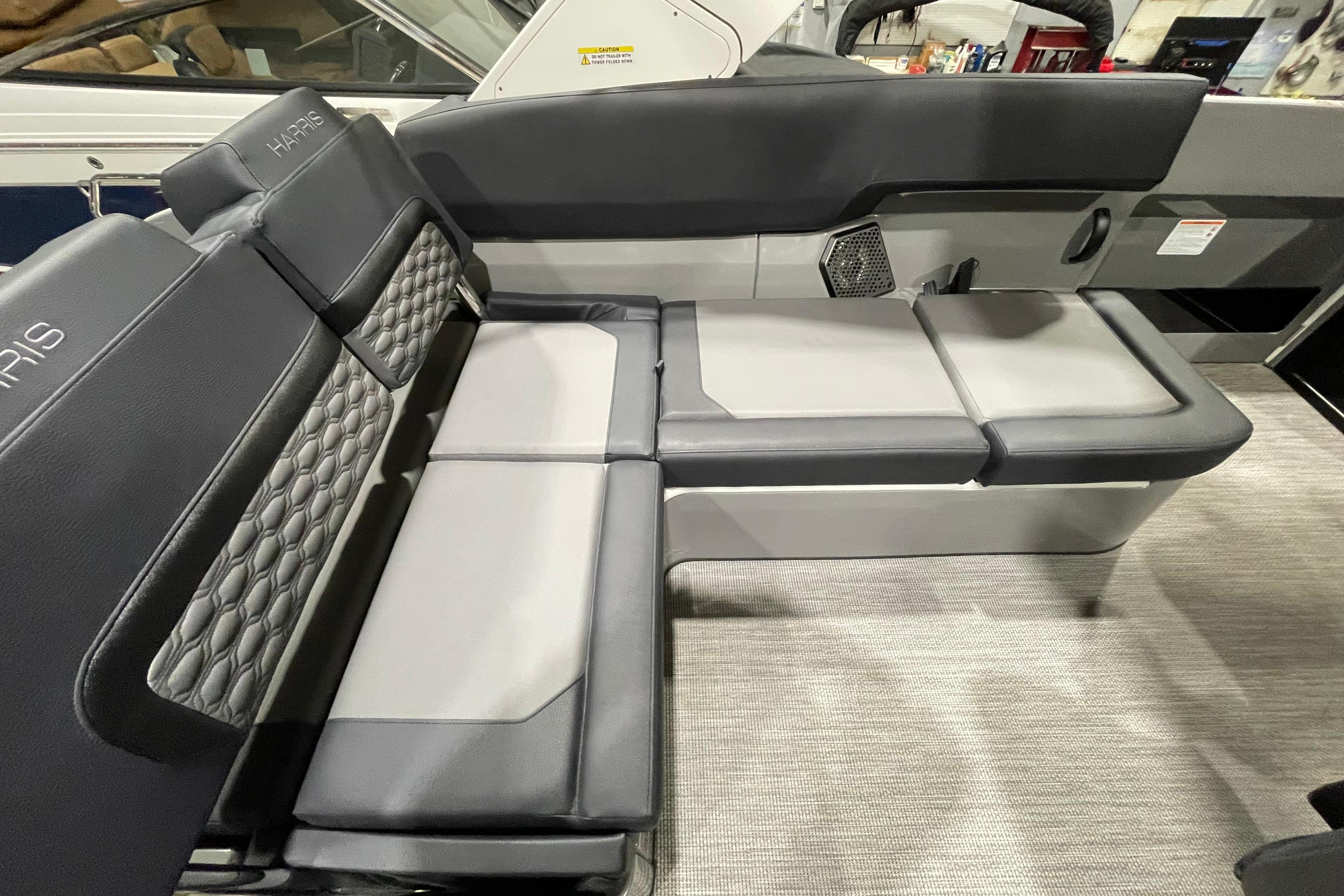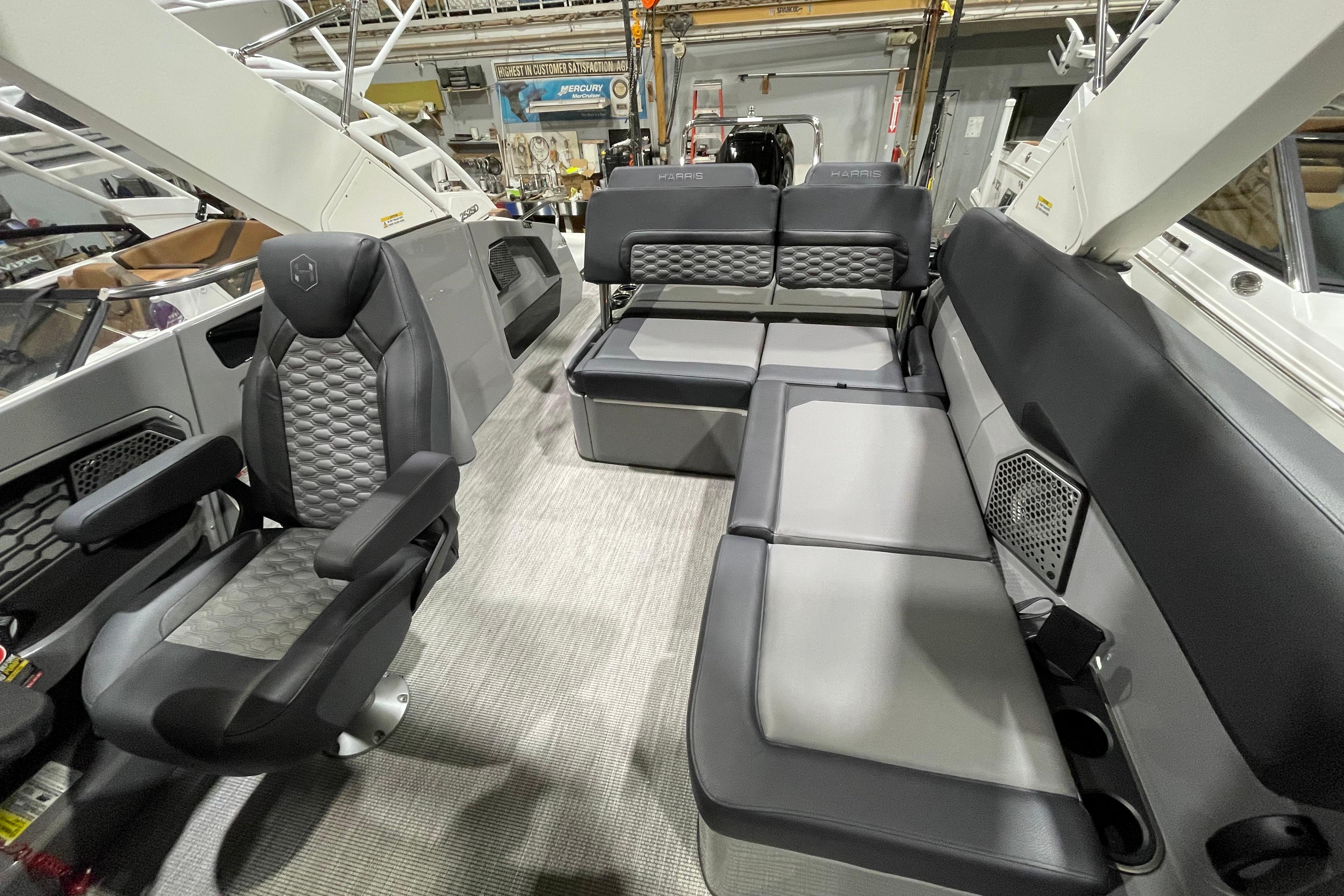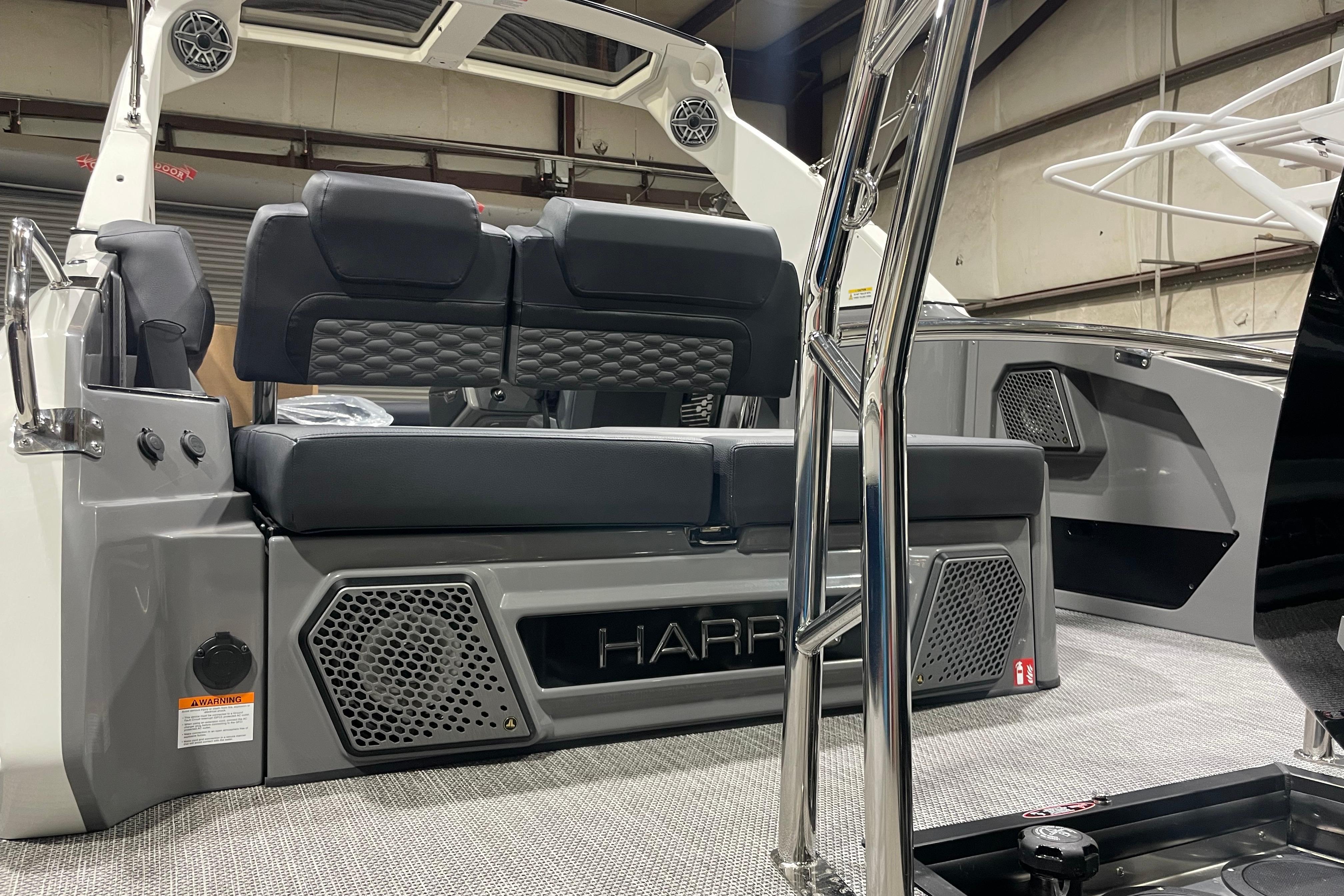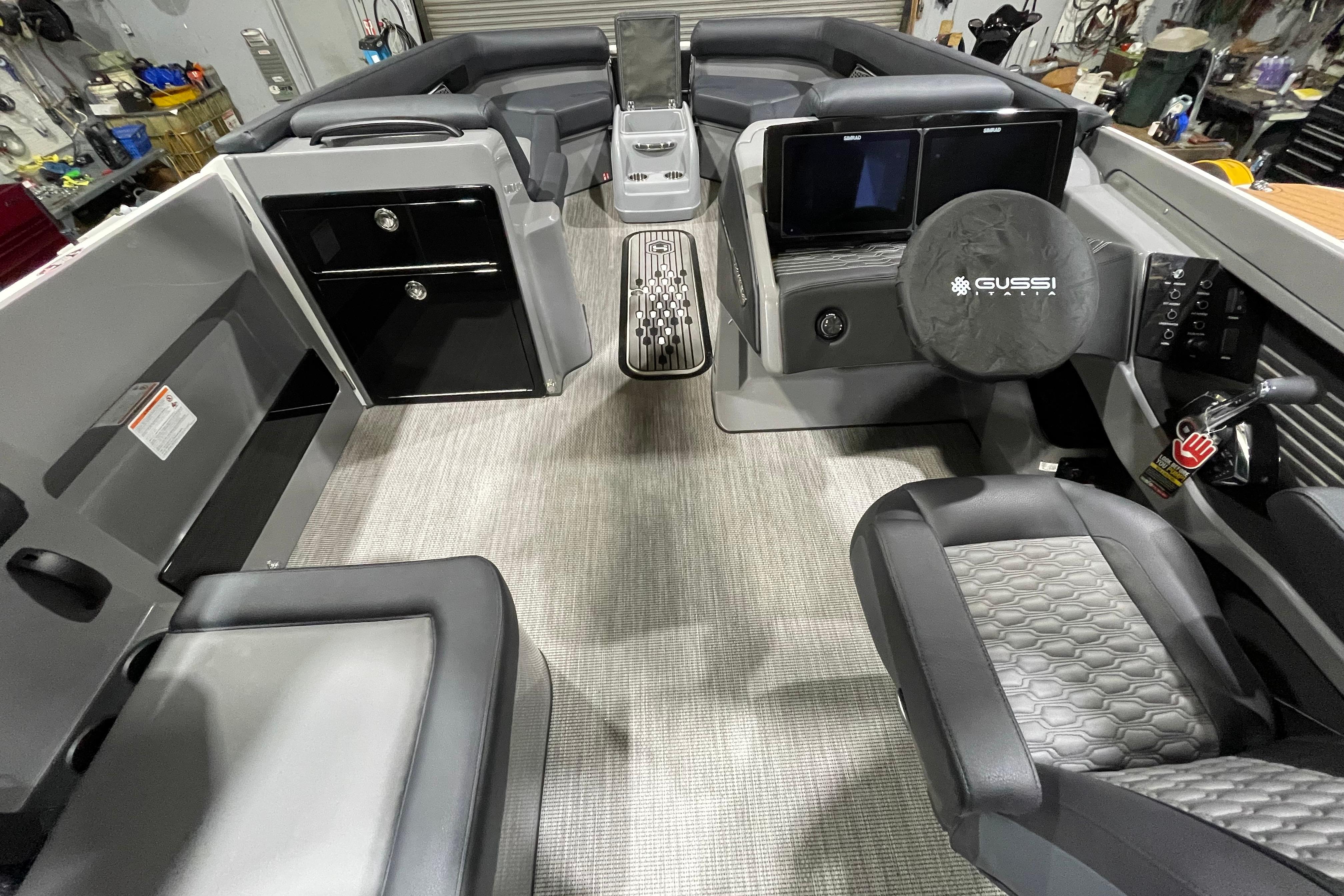 Command the water from the luxury high‑back helm seat, complemented by dual NSX12 displays for next-level navigation and control. The JL Platinum Elite stereo system surrounds the boat with crystal‑clear sound, while the Total Light Package with C‑Zone sets the mood with premium interior and exterior lighting.