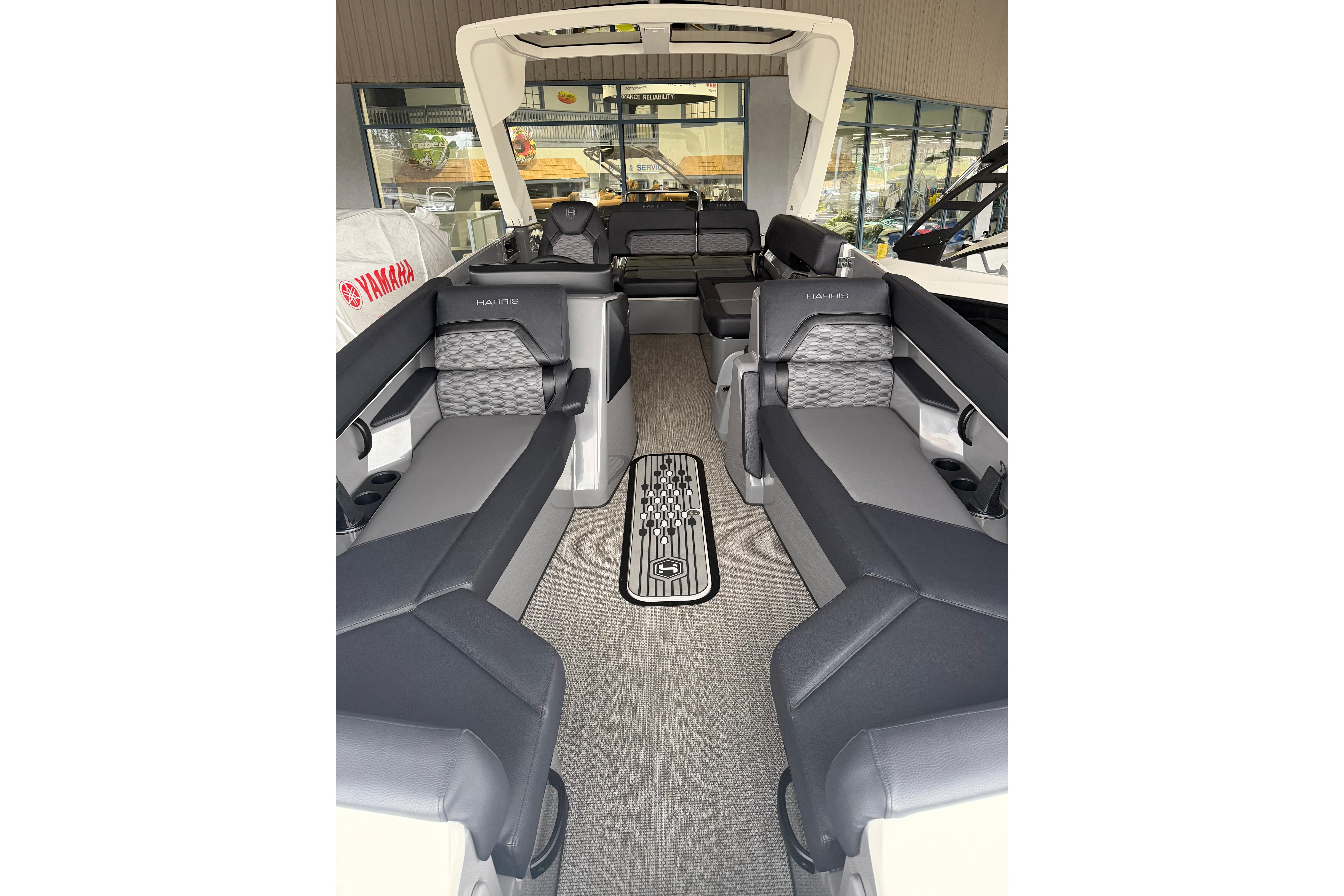 Step aboard and enjoy the sleek Black Chrome trim, Black Edition rubrail, and the exclusive Caviar Cool‑Touch upholstery. The SL Power Floorplan delivers a spacious, rear‑facing lounger perfect for relaxing, entertaining, or taking in sunset cruises.