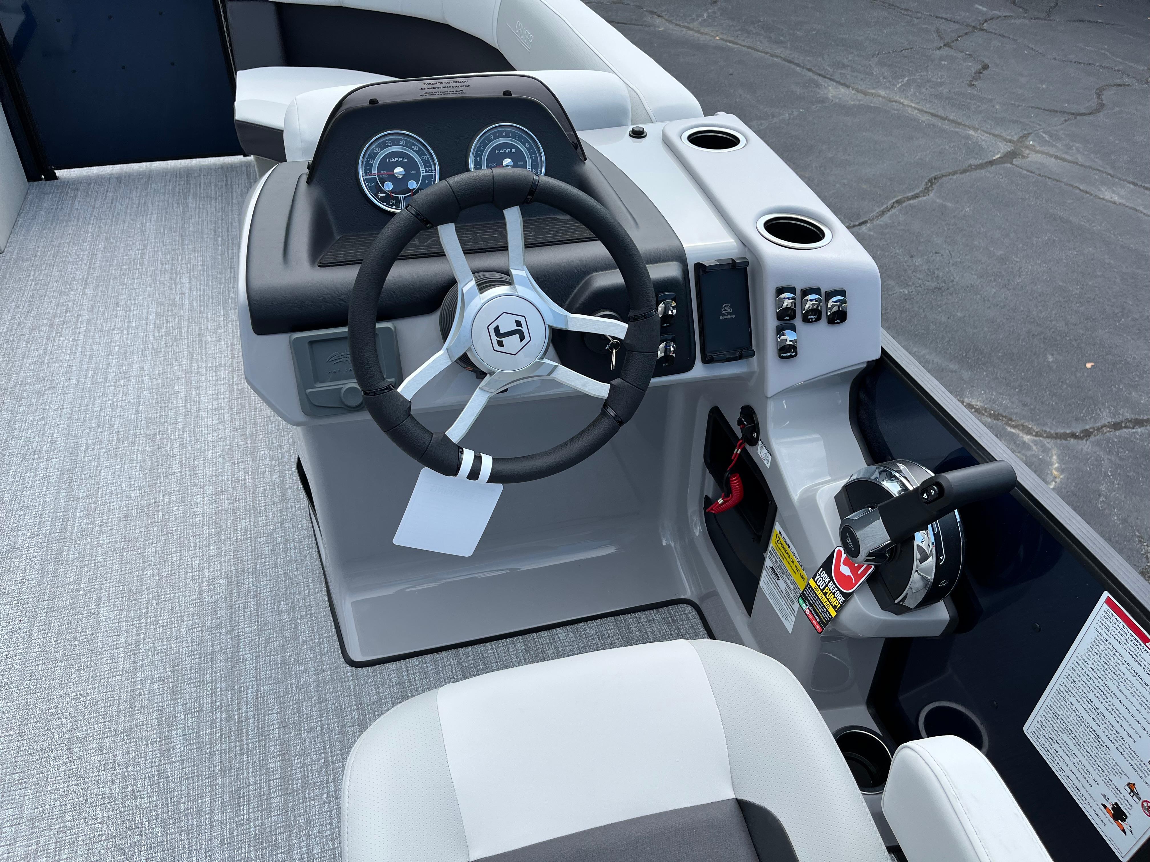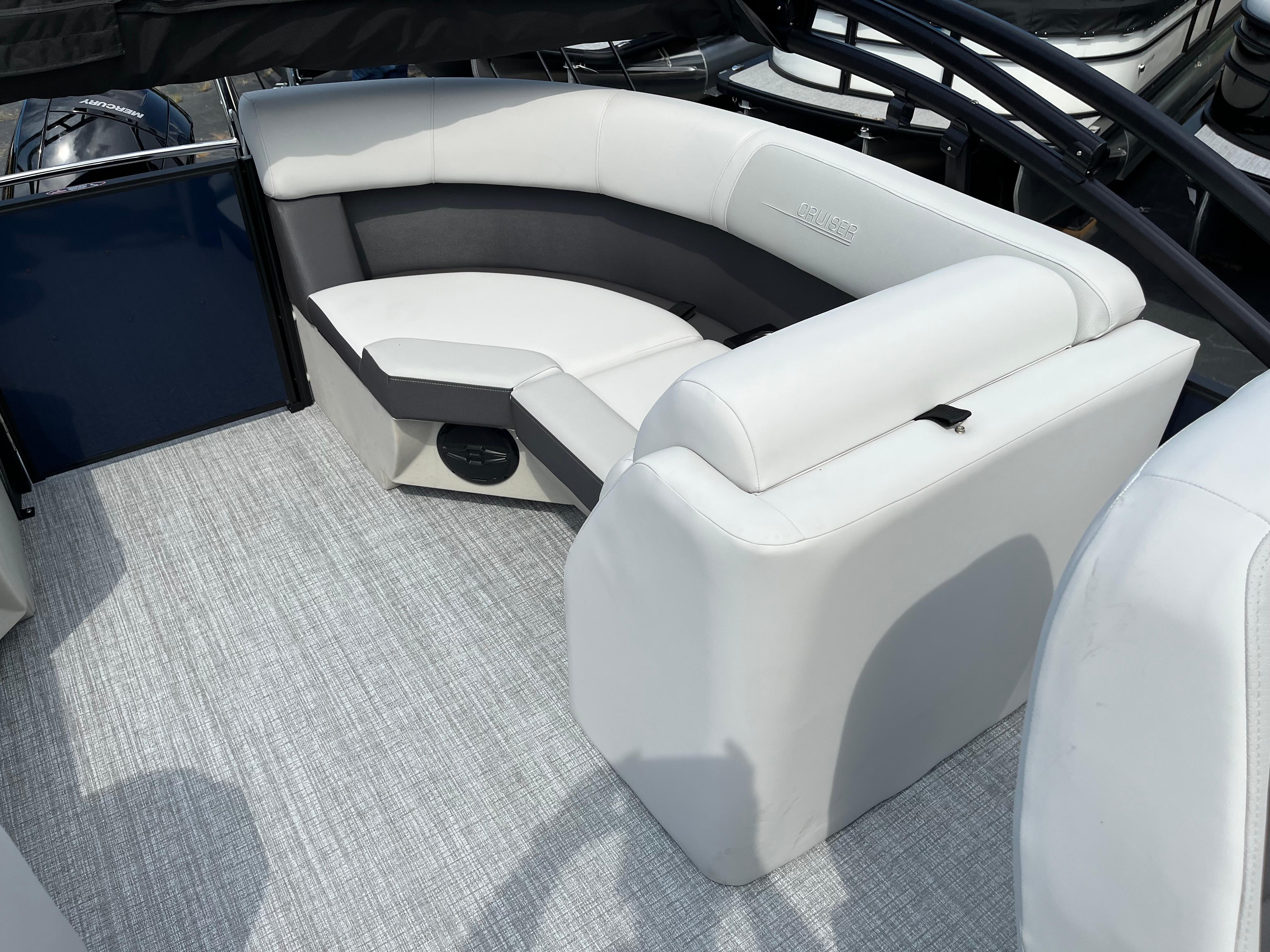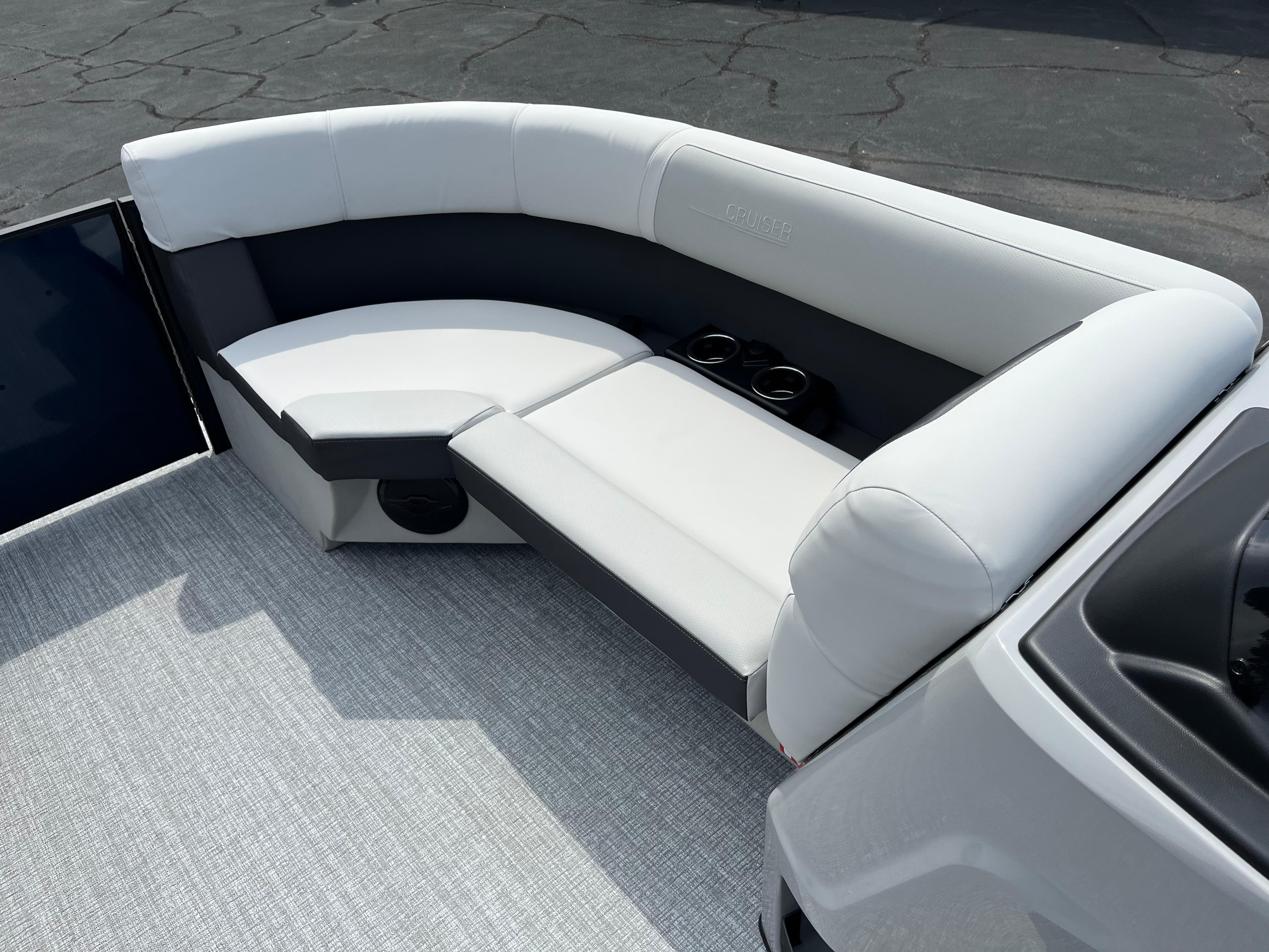 The Cruiser 210 delivers everything you and your family want in a pontoon boat without sacrificing quality, comfort or functionality. Soft-touch fabric wraps the roomy furniture—including a reclining captain’s chair. Generous storage can be found throughout the deck, and Harris’s remarkable RPM Technology provides optimized performance, easy maneuverability, and a smooth, quiet ride. You can also choose from multiple layouts and colors to make the Cruiser perfect for you and your crew.