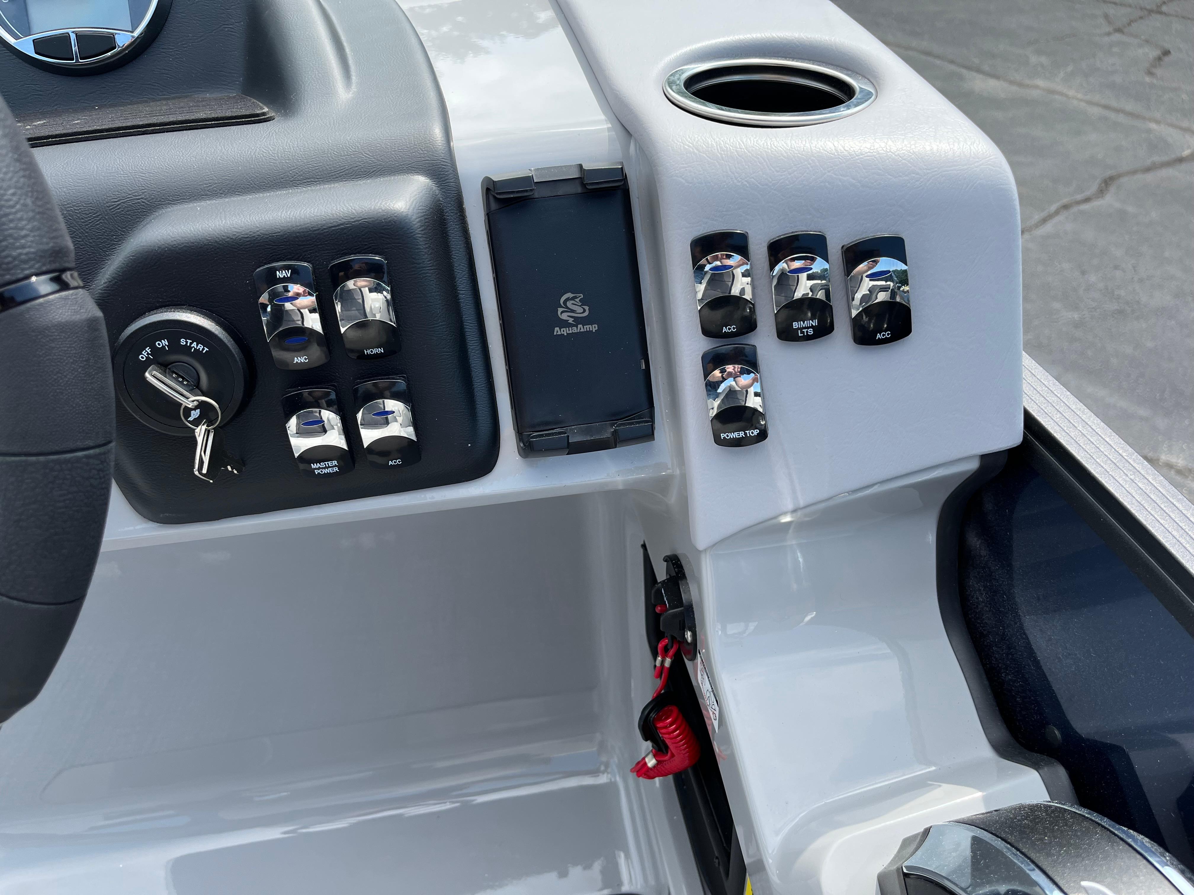 Equipped with: CWDH floorplan, 150 HP Mercury, 325 Chassis, Stainless ski tow, WetSounds stereo, wireless phone charger, 10′ power bimini, Lillipad ladder, 50 gallon fuel tank, and much more!