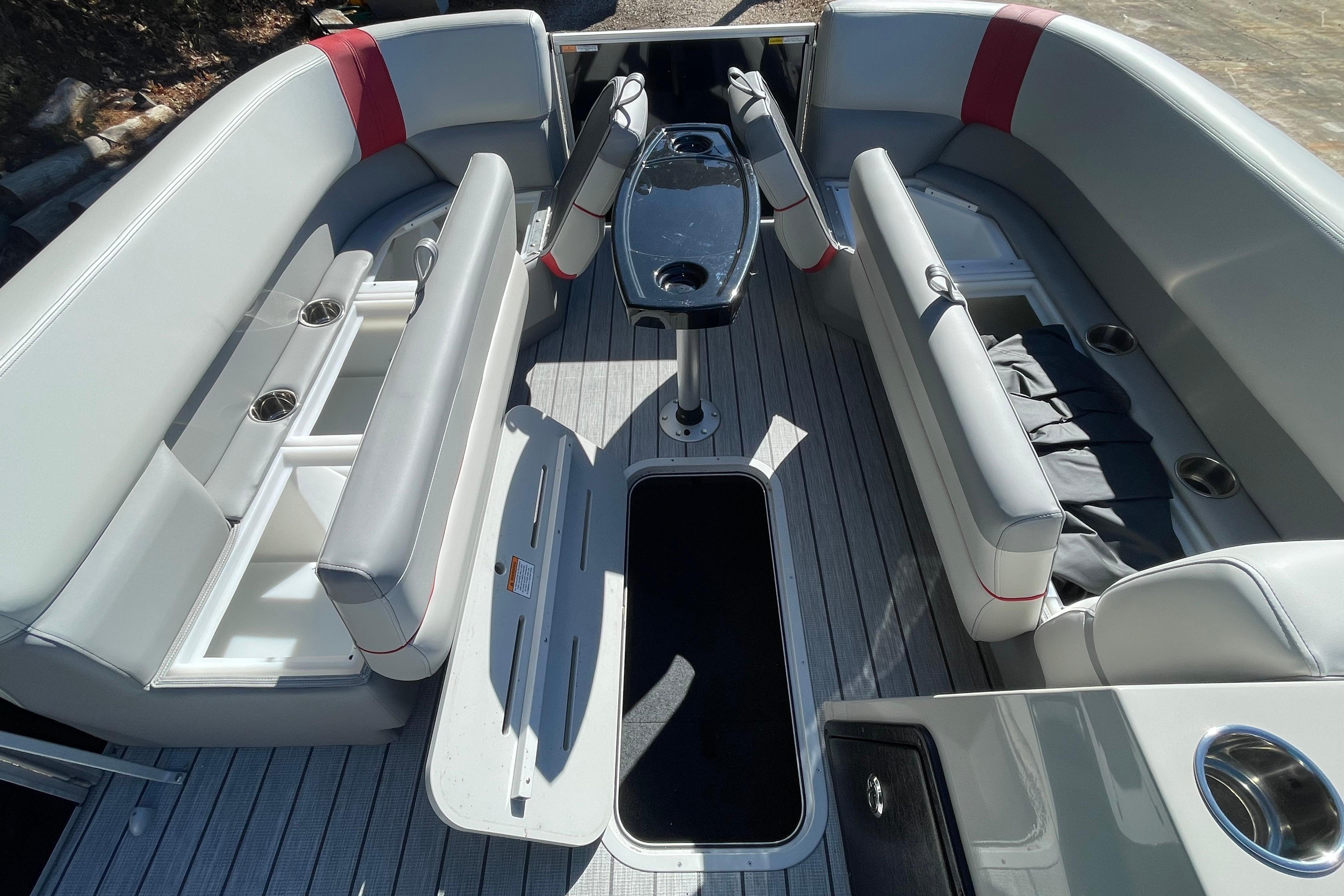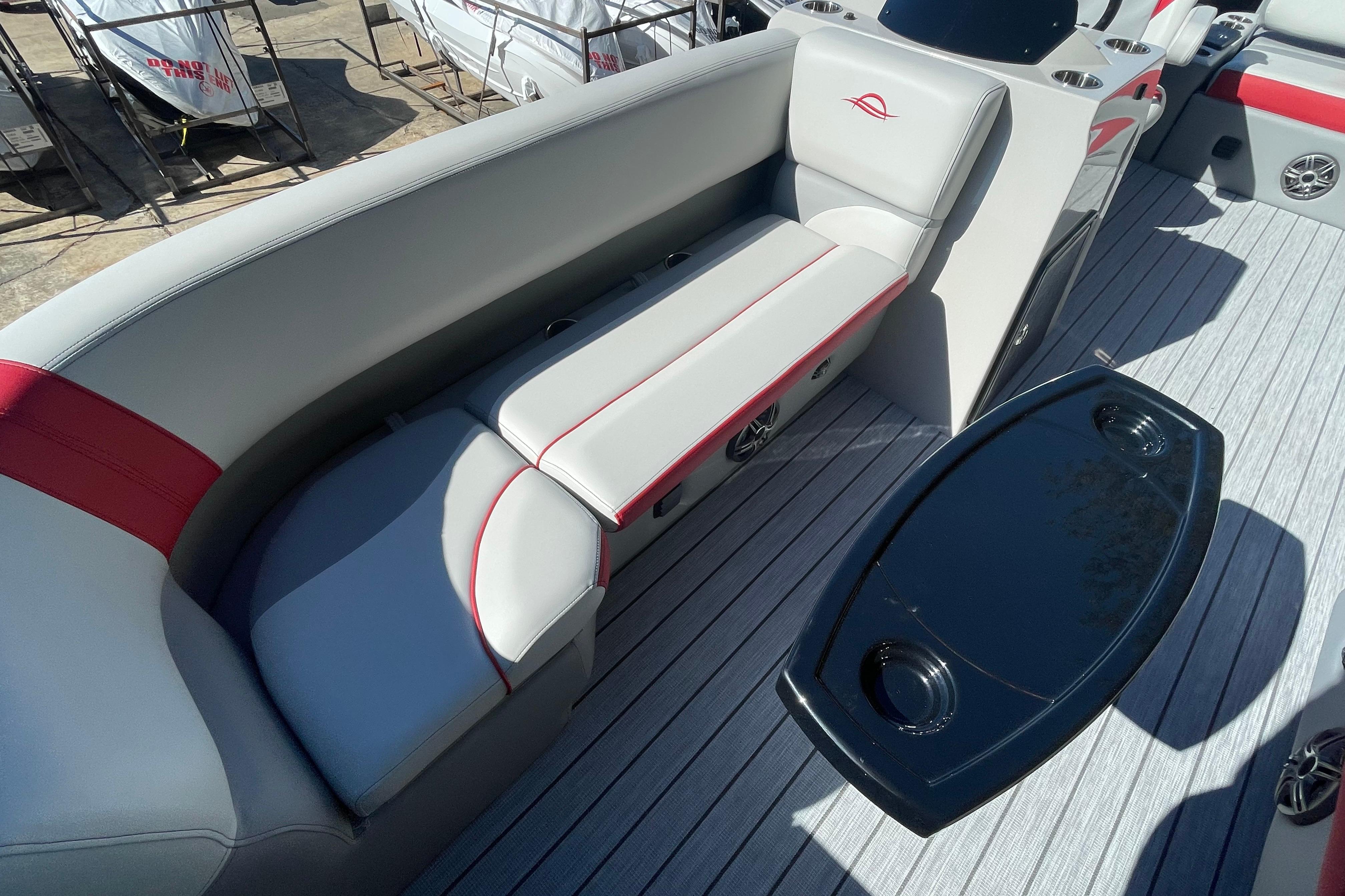 The Select 322SL features a spacious layout with plush seating, including a stylish stern lounge area ideal for relaxing and entertaining. Premium upholstery, abundant storage, and a sleek helm with modern controls ensure a comfortable and convenient experience. Enjoy added amenities such as a quality sound system, durable flooring, and a Bimini top for shade on sunny days.