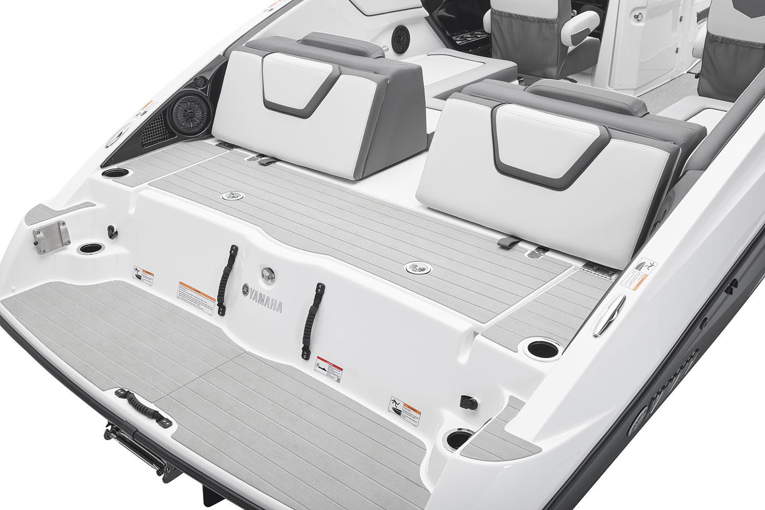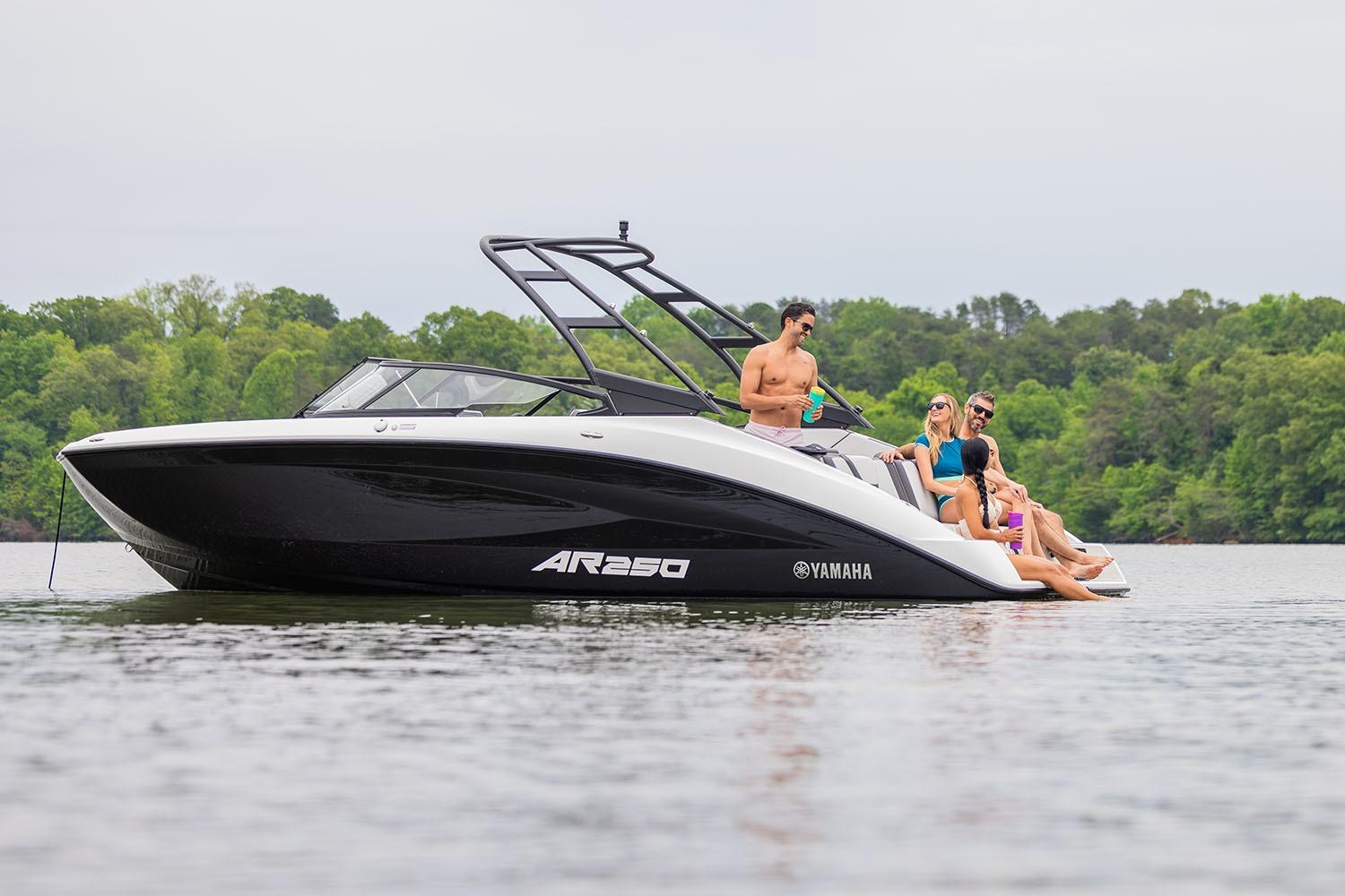 Get ready for ultimate family fun and watersports excitement with the 2026 Yamaha AR250! This 25-foot jet boat is powered by twin Yamaha 1.8L High Output Marine Engines, delivering smooth acceleration, responsive handling, and the safety of jet propulsion for shallow-water confidence. Designed for those who want space and performance, the AR250 features a custom wake tower, expansive wraparound seating for up to 12 passengers, and a large swim platform for easy water access. Yamaha’s Connext® touchscreen system provides intuitive control, while abundant storage and premium marine-grade flooring ensure comfort and convenience all day long. With bold styling, advanced technology, and Yamaha’s legendary reliability, the AR250 is perfect for wakeboarding, cruising, and creating unforgettable memories on the water.